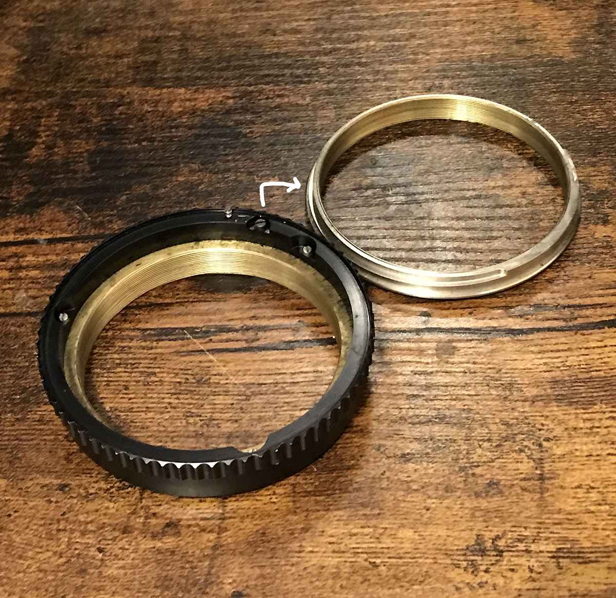 разобрался, на случай если кому понадобится - винт на картинке проходит насквозь и ходит по вырезу в нижней части объектива, в моём случае он обломан и резьба сорвана, веселье продолжается Вложение: